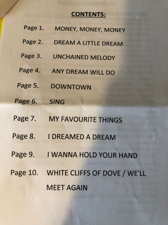 Wir haben uns dafür entschieden, im Chor mitzusingen. Da wir beide schon Chorerfahrung haben, wollten wir uns das mal anschauen. Und ich kann euch sagen: es macht jede Menge Spaß! Das Programm ist ziemlich anspruchsvoll, wie ihr seht!