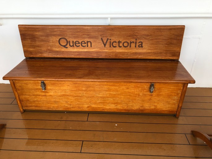 Da wir im sogenannten ‚Britannia Club‘ sind konnten wir auswählen, ob wir alleine oder mit anderen Leuten am Tisch sitzen möchten. Da wir gerne kommunizieren, sitzen wir nun mit Ian, Desna, Neal, Mary, Toni und Marilyn am Tisch. Wir haben jede Menge Spaß aber auch ernsthafte Gespräche und wir genießen die gemeinsamen Mahlzeiten!