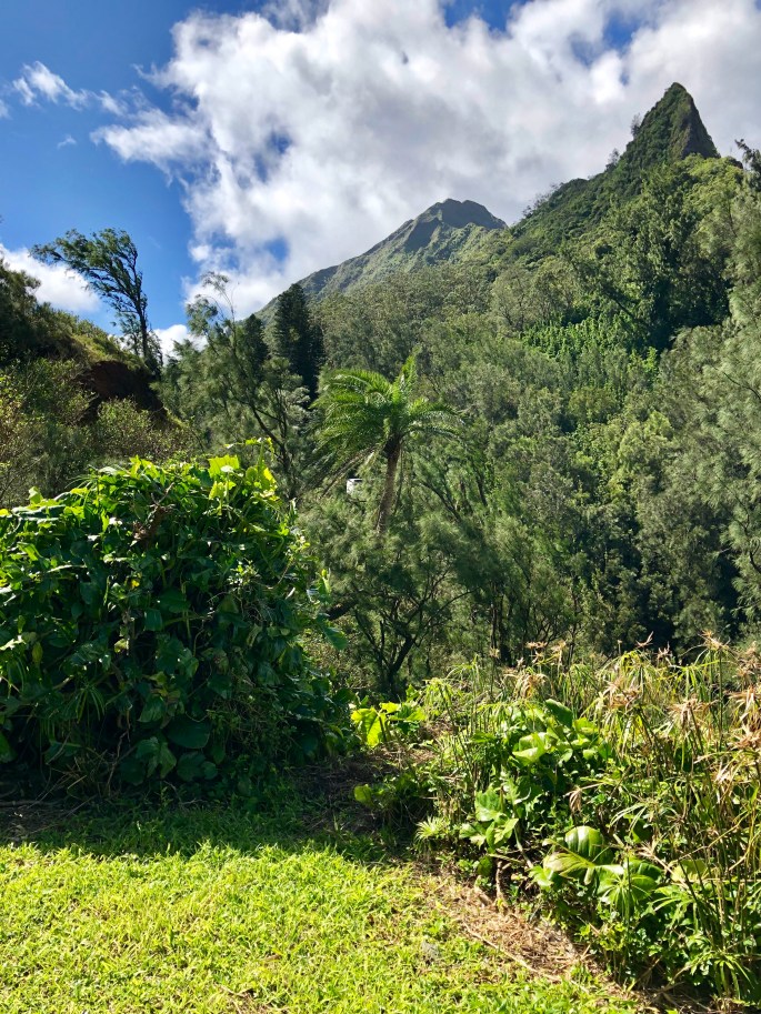 Entlang von Banyanbäumen, Bambus und wildem Ingwer gelangt man zum ‚Punchbowl‘. Ein erloschener Vulkan, der durch Eruption entstand. Er war früher ein Ort ritueller Menschenopfer. Der Blick ist atemberaubend und man vergisst diese historischen Rituale schnell.