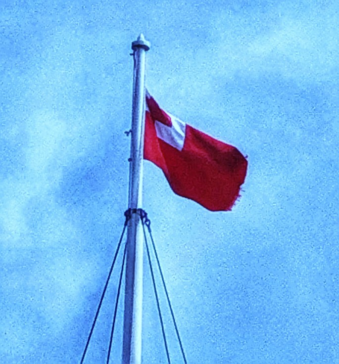 Das Christentum ist hier von methodistischen Missionaren eingeführt worden. Einer davon hat die Verfassung des Landes geschrieben und die Staatsflagge entworfen: ein rotes Kreuz auf weißem Grund. Damit man sie nicht mit dem Internationalen Roten Kreuz verwechselt, hat man später das rot-weiße Emblem in die obere linke Ecke verschoben.