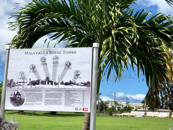 Zunächst besuchen wir die üblichen Sehenswürdigkeiten: den Palast des Königs (zur Zeit des Königs George Tupualou VI) direkt am Ufer neben dem Pier in der Hauptstadt Nukualofa, dann die Königsgrabstätten.
