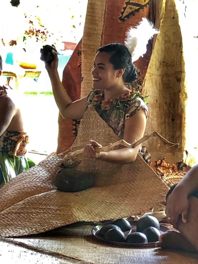Sie präsentieren alles, was für Tonga typisch ist: traditionelle Bekleidung, Tänze und ihre Bedeutung, die Früchte der Insel und die schmackhaften Gerichte, die man daraus zubereiten kann. Wichtig auch die Produktion von Matten für die Häuser, die Herstellung von Naturheilmitteln und vieles mehr. Gezeigt wird auch, wie man von einer Kokosnuss alle Bestandteile verwenden kann und die Zubereitung von Kokosmilch.
