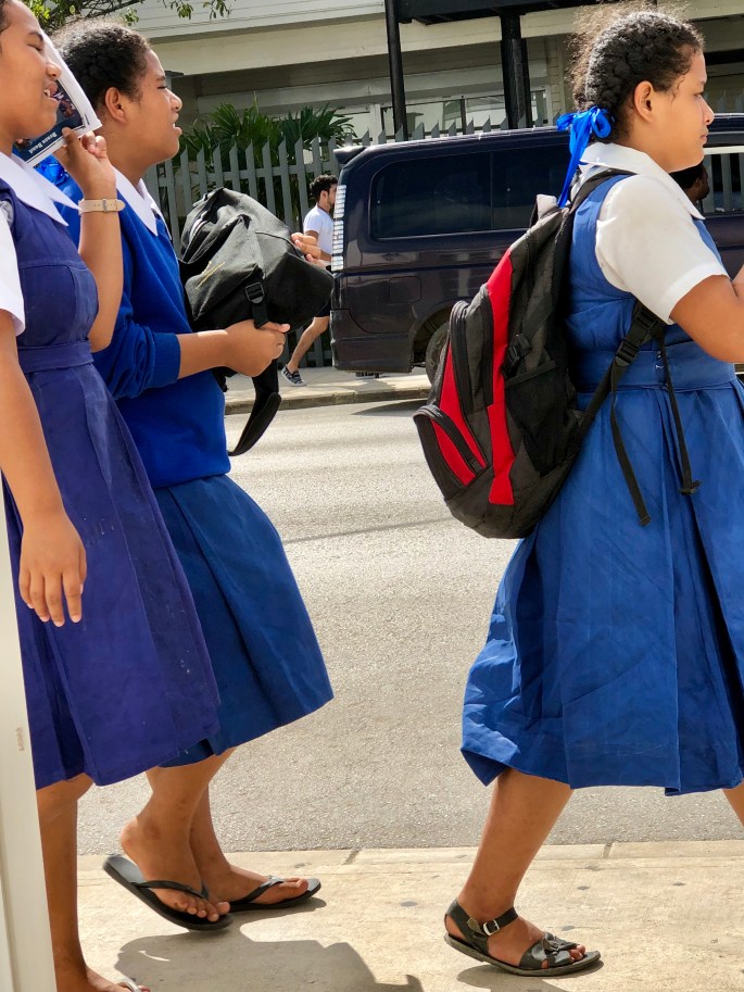Viele Gebäude sehen arg ramponiert aus, die noch nicht ganz bewältigten Folgen zweier Wirbelstürme unmittelbar hintereinander vor zwei Jahren. Viele öffentliche Einrichtungen sind aber schon repariert oder gleich neu gebaut worden. Hilfe kam aus Neuseeland und Australien, aber auch aus Japan und China.