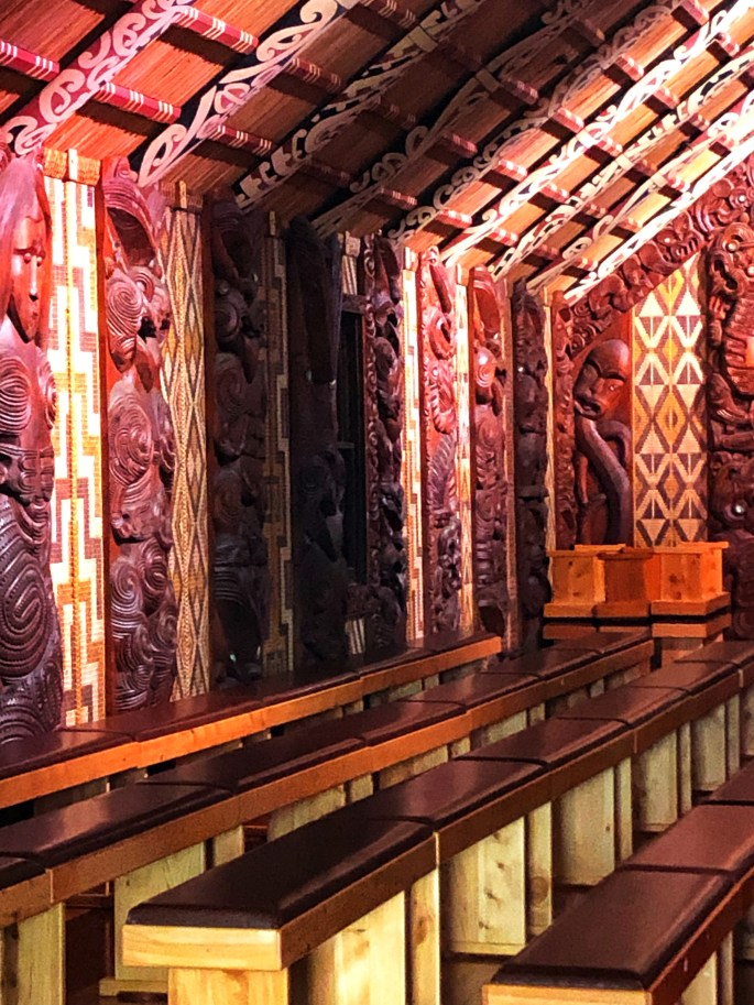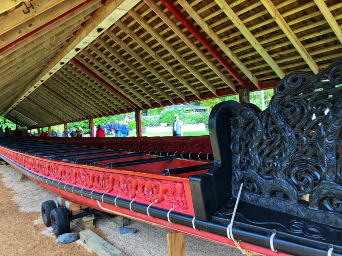 Vielleicht das beeindruckendste Exponat ist das Maori Krieg-Kanu, das man 1940 aus Anlass der 100-Jahr-Feier des Vertrages gebaut hat. Es ist rund 35 Meter lang und gut 2 Meter breit. 120 Männer können darin sitzen – auf jeder Seite 40 Paddler, in der Mitte 40 Mann Ersatz. Mit einem solchen Kanu sollen die Maori erstmals im Jahre 950 Neuseeland erreicht haben. Die Aufzeichnungen waren so genau, dass die Maori 350 Jahre später Neuseeland wiedergefunden haben.