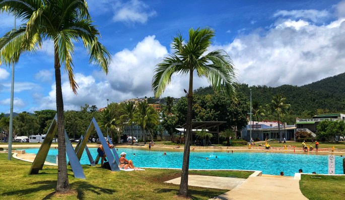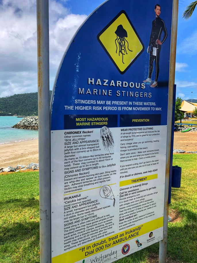 Aber kein Problem: Airlie Beach hat eine wunderschöne Lagune ohne all dieses Getier – und da gehen wir auch hin. Wir bereuen es nicht: ein sehr entspannter Tag nach all den Eindrücken in den großartigen Städten.