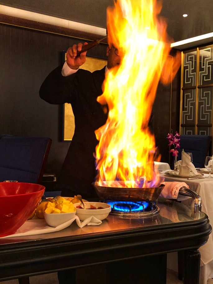 Und Ryan entzündete zur Feier des Tages noch eine riesige Flamme für die flambierten Erdbeeren.
