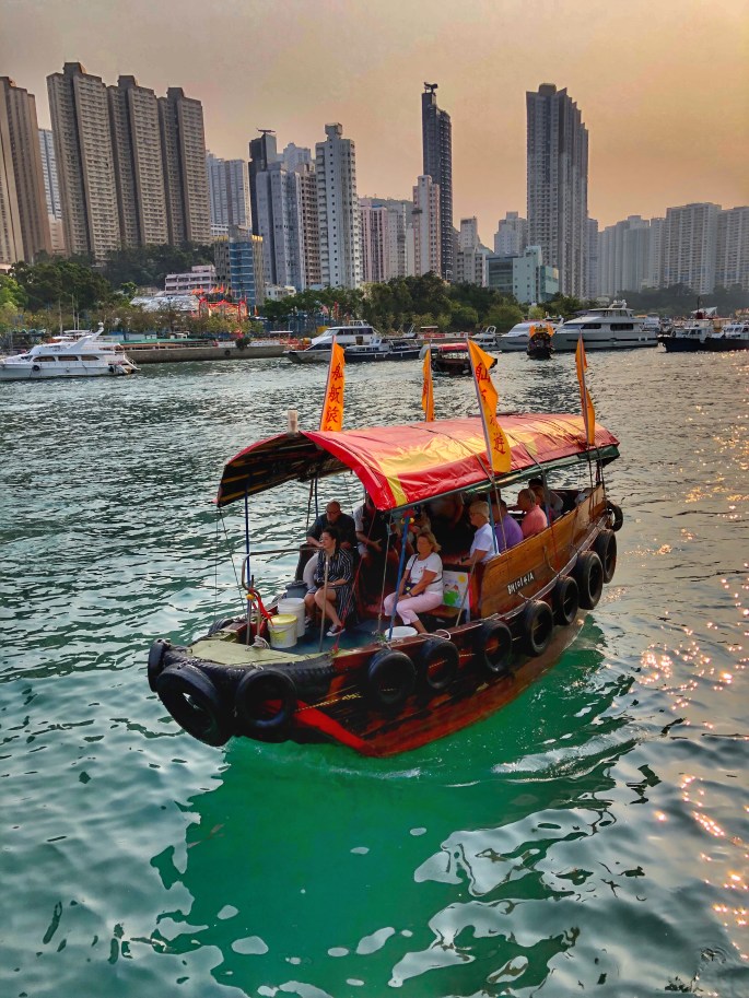 Den Abschluss unserer Tour bildet eine Sampanrundfahrt in Aberdeen – gefahren von einer Frau. Aberdeen war früher eine Dschunkenstadt, heute ist davon fast nichts mehr zu sehen. Nur die arme Bevölkerung lebt auf Hausbooten, die eher wenig komfortabel aussehen.