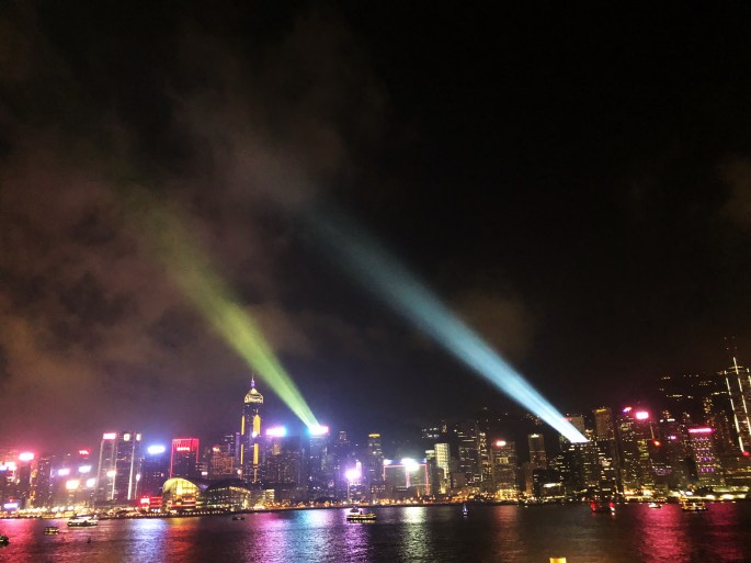 Bevor wir am Abend auslaufen, können wir uns von der Queen Victoria aus die jeden Abend stattfindende Lasershow ansehen. Es ist sehr beeindruckend und manifestiert unseren Eindruck von Hongkong: überdimensional und sehenswert. Leben möchten wir hier aber nicht.