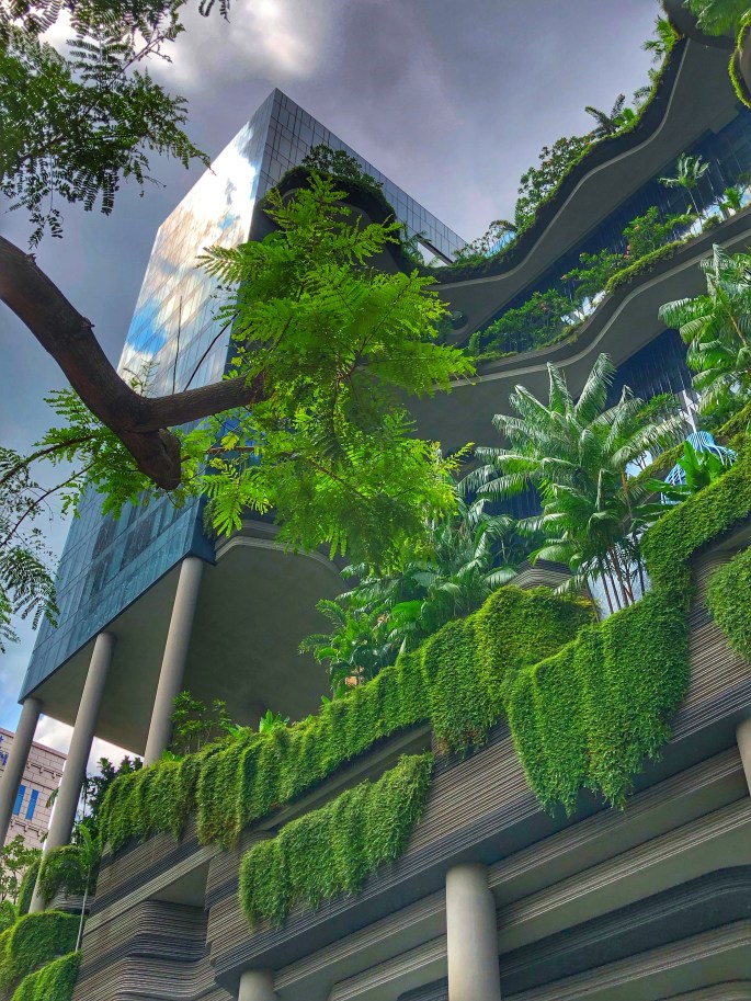 Die Straßen laufen wie grüne Adern durch die Stadt. Dazwischen findet man immer wieder Parks und Bäume – wunderbar! Singapur will sich von einer ‚Gartenstadt‘ zu einer ‚Stadt im Garten‘ entwickeln. In den letzten 25 Jahren ist der Anteil der Grünflächen von einem Drittel auf die Hälfte der Stadt angewachsen. Und bis Ende 2030 sollen 80 Prozent aller Gebäude in der Stadt grün sein. Das heißt, es werden immer mehr Hochhäuser vertikal und horizontal bepflanzt. Und wir haben viele einfache Beispiele gesehen, die man einfach und wirkungsvoll in unseren feinstaubgeplagten Städten umsetzen könnte.