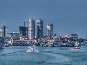 Colombo, die Hauptstadt von Sri Lanka mit 1,6 Millionen Einwohnern ist unser nächster Hafen. Schon beim Einlaufen wird klar, dass ein weiterer schwül-heißer Tag vor uns liegt. Die 30 Grad Marke ist bereits um 8 Uhr morgens überschritten. Deshalb müssen wir für den Besuch der Stadt ausreichend Wasser mitnehmen. Zunächst aber eine Enttäuschung- wir legen nicht etwa unweit des Forts an, das im mittelalterlich portugiesisch und niederländisch geprägten Zentrum der Stadt liegt.