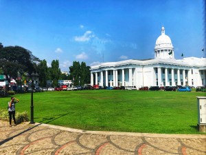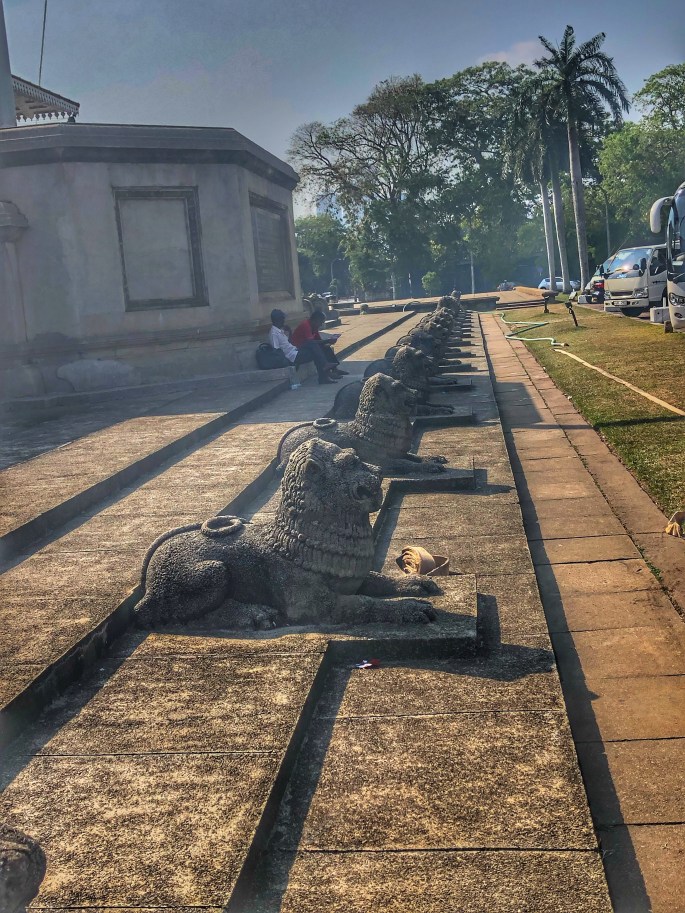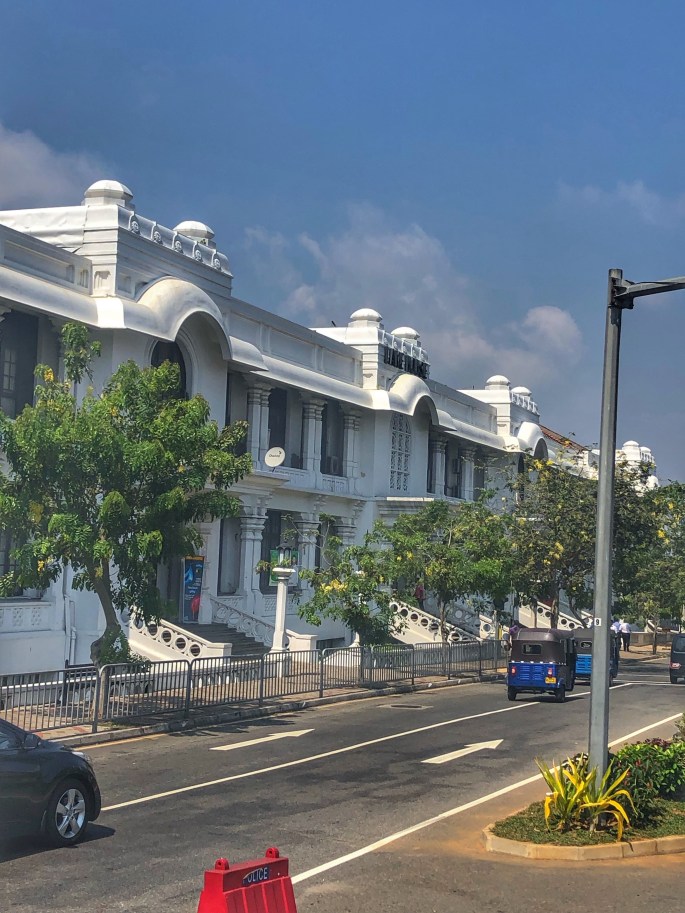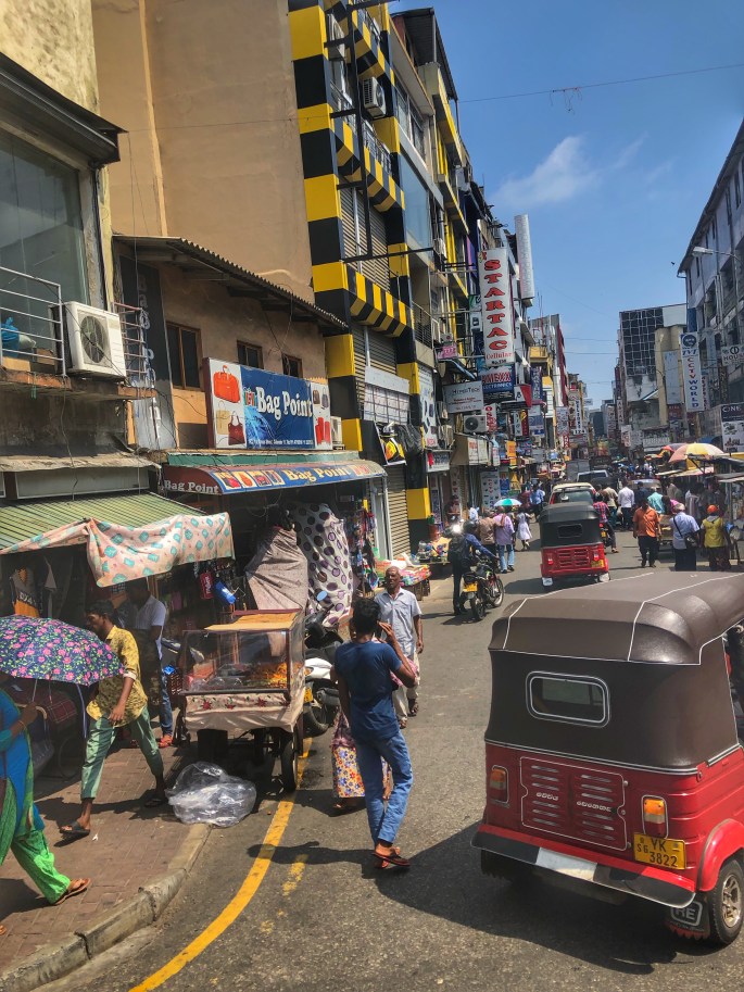 Durch den noblen Stadtteil ‚Cinnamon Gardens‘ – also Zimtgärten – geht es dann wieder zurück Richtung Hafen zur Queen Victoria. Bemerkenswert ist der Kontrast zwischen hochmodernen Häusern und direkt daneben stehenden alten Gebäuden, die scheinbar nur noch durch die Stromleitungen zusammengehalten werden. In den Einkaufsstraßen herrscht reger Betrieb, Colombo bereitet sich auf das Wochenende vor.