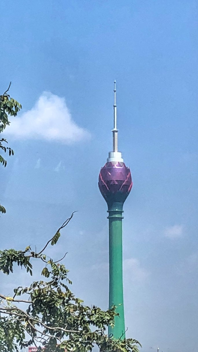 Und von vielen Stellen in der Stadt kann man den neuen Stolz des Landes bewundern: der neue Fernsehturm ist das 7höchste Gebäude in Asien. Im Mai soll es offiziell eingeweiht werden. Seine Besonderheit: die Form stellt eine Lotosblume dar. Der Schaft ist grün gestrichen, die Aussichtsetagen sind in dunkelrot gehalten. Und wirklich, es sieht einer Lotosblume schon sehr ähnlich. Unser Tourguide Lal ist sehr stolz darauf!