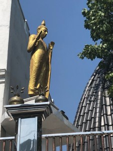 Der nächste Stopp im Verkehrschaos ist ein Buddhatempel, dessen Inneres wie immer nicht mit Schuhen betreten werden darf. Große und sehr bunte Buddha-Statuen innen, draußen ein schöner ruhiger Park.