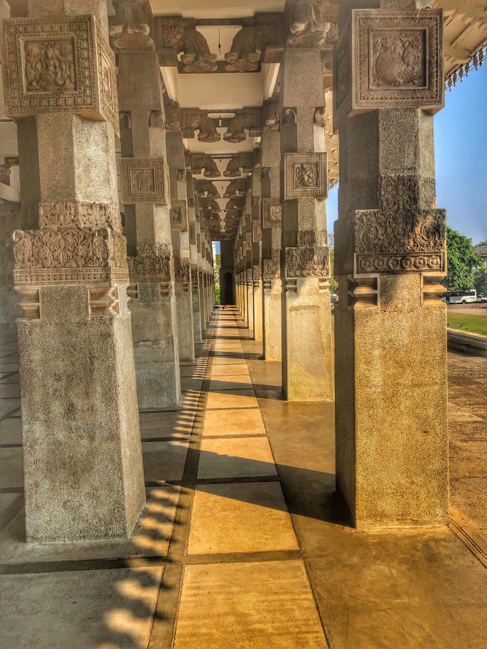Ziel ist der Unabhängigkeitsplatz, auf dem sich ein großer offener Bau mit Säulenreihen und einem hohen Dach befindet. Der Schatten ist bei dieser Hitze sehr angenehm.