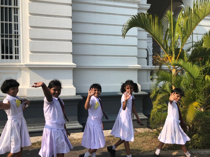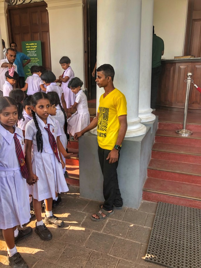 Hier in Colombo sind ganz eindeutig die anderen Besucher der Höhepunkt: Gleichzeitig mit uns besuchen einige Schulklassen das Museum. Und die Mädchen in ihren Schuluniformen begrüßen uns herzlich, winken, kichern oder lachen. Auch sie interessieren sich nicht sonderlich für die Exponate, sondern mehr für uns. Auch für die in Landestracht gekleideten Lehrer scheint das ein eher lästiges Pflichtprogramm zu sein. Es gibt keinerlei Erklärungen und alle Schüler laufen im Galopp durch die Räume. Dann streben sie zu ihrem Bus zurück, denn da gibt es etwas zu trinken.
