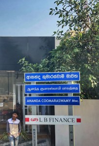 Die Verkehrssprachen in Sri Lanka sind Singhalesisch, Tamilisch und Englisch. Weil jede der drei Sprachen ein anderes Alphabet benutzt, fällt die Beschilderung der Straßen recht aufwändig aus.