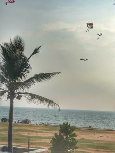Am Strand sehen wir noch die Einheimischen mit ihren Drachen.