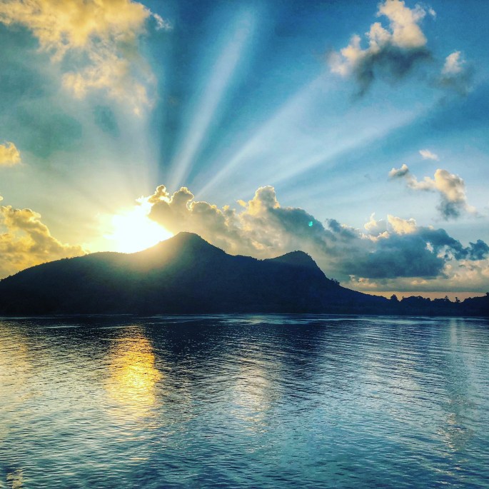 Als wir im Morgengrauen ankommen, empfängt uns ein Sonnenaufgang, der seinesgleichen sucht. Er sieht so kitschig aus, wie man ihn von einigen Malern kennt. Wir hätten nicht gedacht, dass so etwas wirklich existiert.