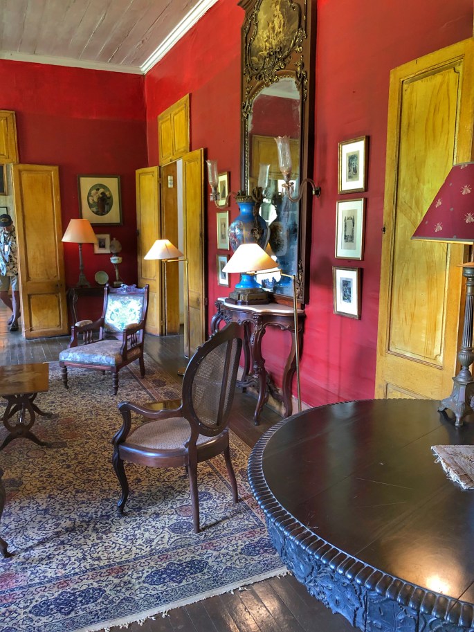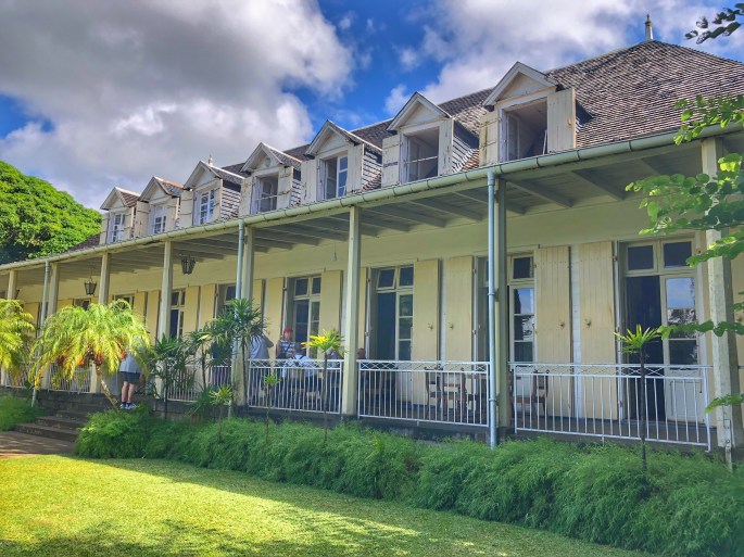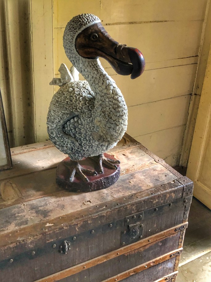 Unser Ziel war ein Kolonialhaus – genannt Maison Eureka – das von einem Anwalt des früheren Gouverneurs errichtet wurde. Es liegt in Moka, einem kleinen Ort in den Bergen. Ein Franco Mauritianer hat es später übernommen. Er hatte 17 Kinder – alle mit derselben Frau! Das wäre heute undenkbar – die neue Generation hat nur ein maximal zwei Kinder. 1985 hat er alles verkauft und seit 1985 ist das Gebäude ein Museum. In dem Haus konnten wir sehen, wie die Familie früher gelebt hat. In den Räumen stand auch immer wieder ein Vogel – genannt Dodo! Es ist eine längst ausgestorbene Spezies, wird aber immer noch als Symbol verwendet.
