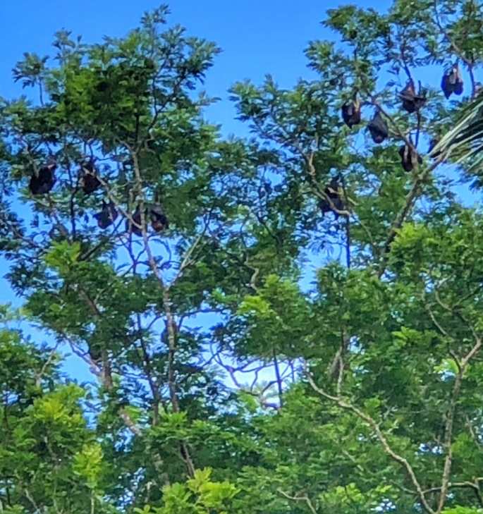 In den Bäumen hingen die Flughunde, die wie wir erfuhren nicht nachtaktiv sondern auch tagaktiv sind. Elisabeth erzählte uns, dass die Flughunde zu einer richtigen Plage geworden sind.