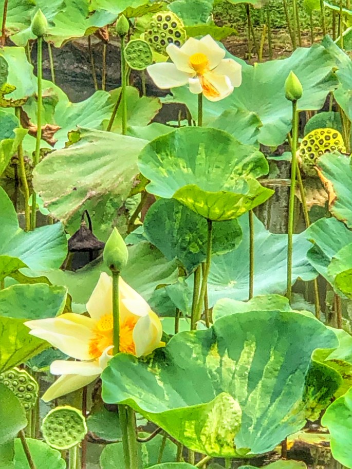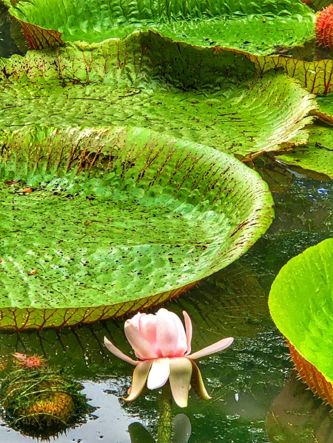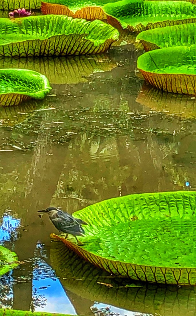 Wir gingen weiter zu den größten Seerosen der Welt – ein grandioser Anblick. Diese Seerosen können bis zu 3 Kilogramm tragen. Deshalb war es nicht erstaunlich, dass ein Vogel regungslos am Rand saß und auf den richtigen Moment wartete, in dem er sein Futter aus dem Teich fischen konnte.