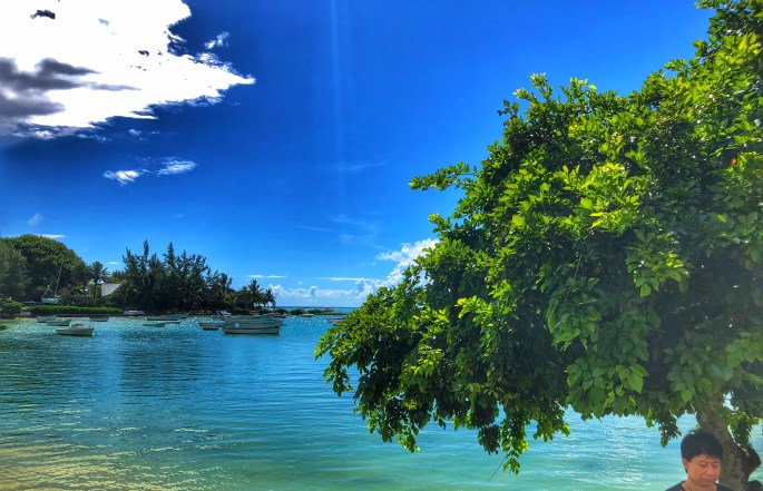 Gut gelaunt (nicht nur wegen des Rums) ging es weiter zum Cap Malheureux. Ein phantastischer Aussichtspunkt, bei dem man die unterschiedlichen Färbungen des Wassers bewundern kann. Für den Namen Cap Malheureux („Unglückskap“) gibt es übrigens zwei Deutungen. Im Jahr 1810 ging die britische Armee hier an Land und annektierte ganz Mauritius. Die zweite Erklärung ist, dass sich in der harmlos erscheinenden, aber strömungsreichen Wasserpracht vor dem Kap schon einige Schiffsunglücke ereigneten. Egal, die Fotomotive sind sehr schön.