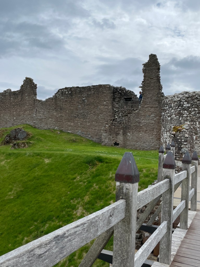 Viel ist nicht mehr übrig – dennoch: Die Ruinen lassen sehr gut erahnen, welch prachtvolle Burg die Urquhart Castle einst war. Stolz überblickt der verfallene Turm der Urquhart Castle das weite Loch Ness. Die Burg steht strategisch günstig: Wer im Mittelalter auch immer durch das Great Glen – das große Tal der Highlands – ziehen wollte, musste Urquhart Castle passieren. Das Loch bot dabei einen natürlichen Schutz. Denn Urquhart liegt auf einem Landvorsprung, der in den großen See hineinragt. Dadurch ist die Burg von drei Seiten mit Wasser umgeben – keine Chance für die Feinde. Vor allem, weil man auf der Landseite noch einen Burggraben gezogen hatte, der nur mit einer Zugbrücke zu passieren war.