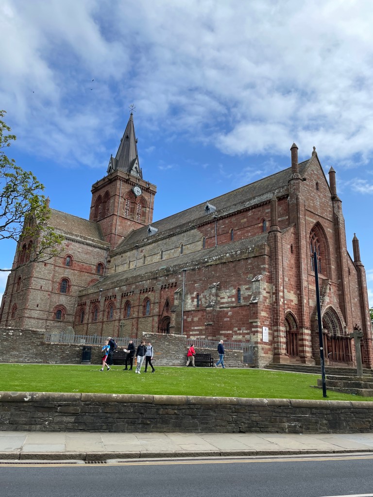 Nach der gebuchten Tour haben wir in Kirkwall noch ein Eis gegessen und uns angeschaut, welche Kirchen es hier gibt, King Charles bewundert und das schöne Wetter genossen.