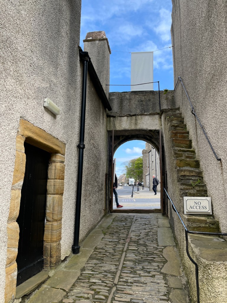 Hier in Kirkwall legen pro Jahr 220 Kreuzfahrtschiffe an – eine unglaubliche Zahl, zumal es nur einen Liegeplatz gibt. Deshalb lebt die Stadt hauptsächlich vom Tourismus, an zweiter Stelle von der Landwirtschaft und an dritter Stelle erst von der Fischerei.