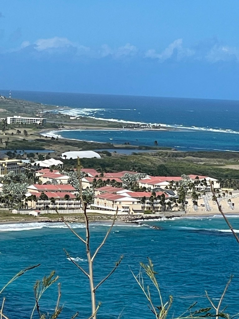 Yay Yay fuhr mit uns noch bis zum anderen Emde der Insel, um uns zu zeigen, dass St. Kitts auf einer Seite den Atlantischen Ozean mit ziemlich vielen Wellen hat und auf der gegenüberliegenden Seite die ruhige karibische See.