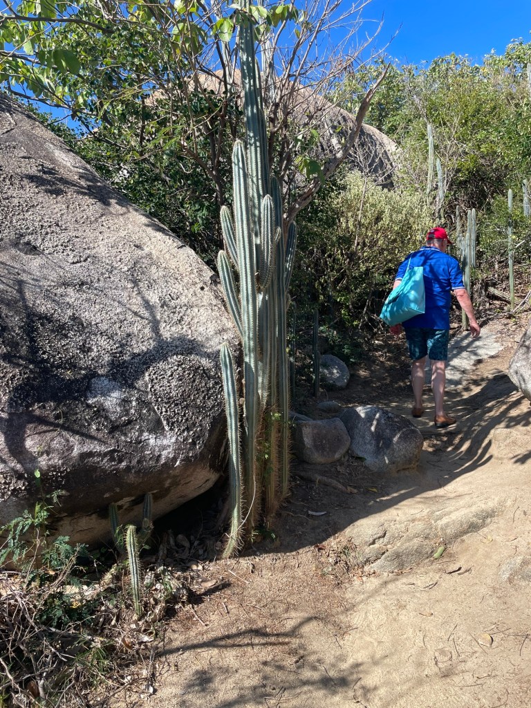 Ab hier ging es über sehr steile Wege und Klippen durch den Nationalpark. Wir werden belohnt mit einem ersten Strand und imposanten Granitfelsen. Sie bilden einen reizvollen Kontrast zum weißen Sandstrand und dem kristallklaren Wasser.