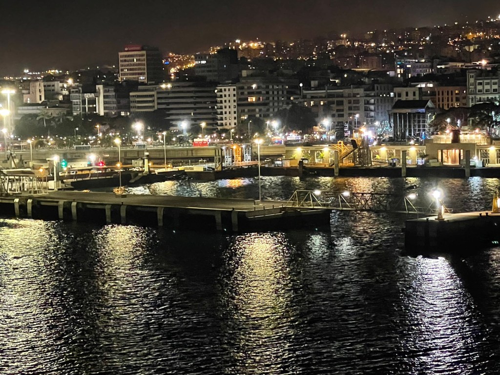 In Santa Cruz auf Teneriffa – unserer letzten Destination vor Bremerhaven- sind wir gegen Mittag eingetroffen. Strahlender Sonnenschein und angenehme Temperaturen von 23 Grad begrüßten uns – und nicht nur das: auch ein Schwarm Delfine heißt uns willkommen. Leider wie immer: keine Chance so schnell ein Bild zu machen.