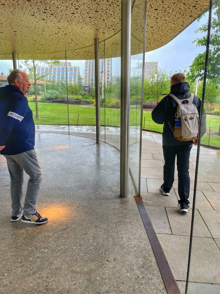 Wir fuhren weiter zur Königlichen Oper auf der Insel Holmen ist. Sie ist als dänische Nationaloper eine der modernsten Bühnen der Welt. Institutionell ist sie Teil des Königlichen Theaters. Und obwohl es regnete, konnten wir trockenen Fußes durch einen Glasgang entlang der Oper laufen. Sehr angenehm, wenn der König die Oper besucht, aber auch für die normalen Zuschauer, wenn sie in Abendgarderobe anreisen. Die Oper wurde von dem größten und mächtigsten Unternehmen in Skandinavien Maersk gestiftet.