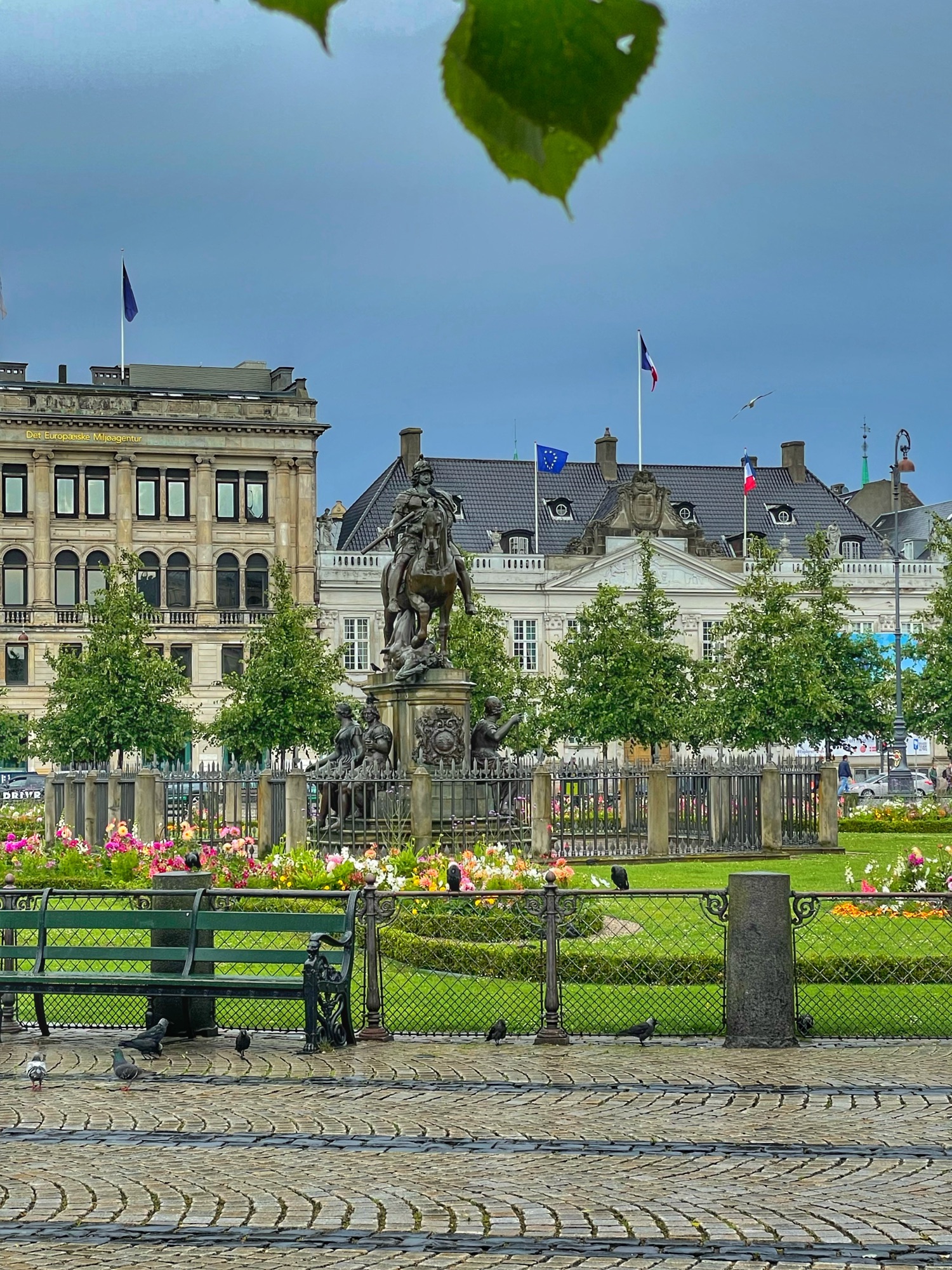 Das Schloss Amalienborg ist die Kopenhagener Stadtresidenz des Königs Frederiks X. Das Schloss besteht aus 4 Rokokopalästen, von denen zwei für die Öffentlichkeit zugänglich sind. Margarethe wohnt im linken Teil des Schlosses. Die Anwesenheit des Königs wird durch seine Standarte symbolisiert. Aber leider war er heute nicht da.