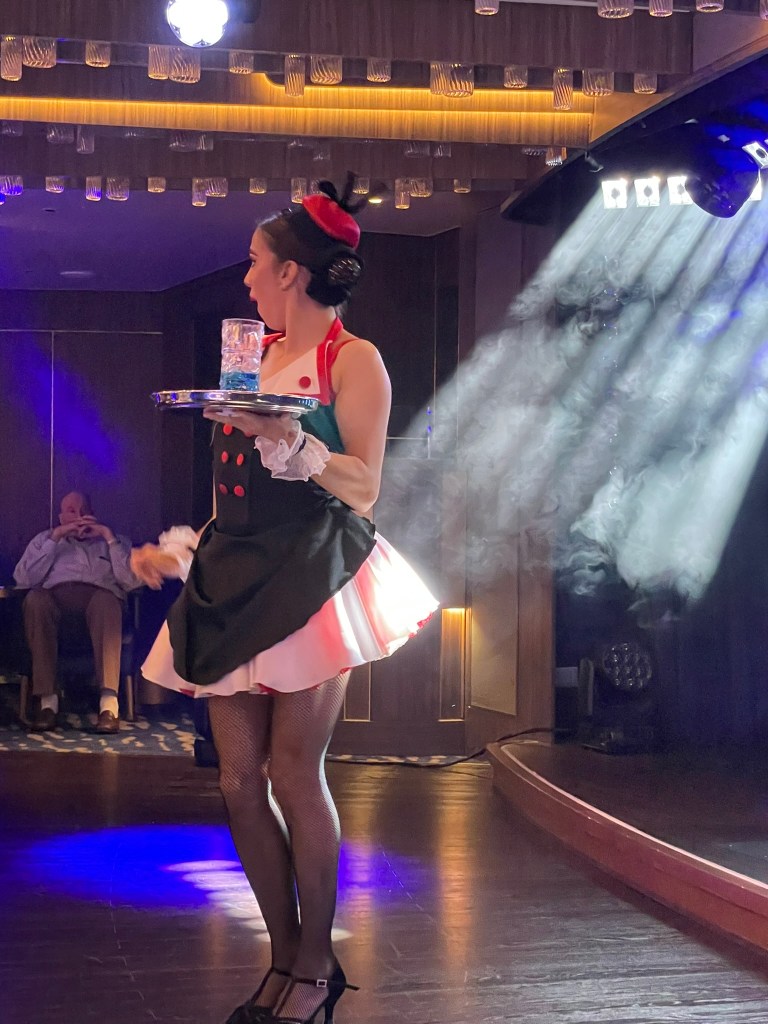 Ein besonderes Highlight war diesmal im Bright Lights Society eine interaktive Krimi-Show. Wir hatten soooo viel Spaß, da wir immer wieder in die Jokes und Handlung einbezogen wurden. Diese Showbar bietet eine völlig neue Art der Unterhaltung an Bord der Queen Anne und heißt NOIR.